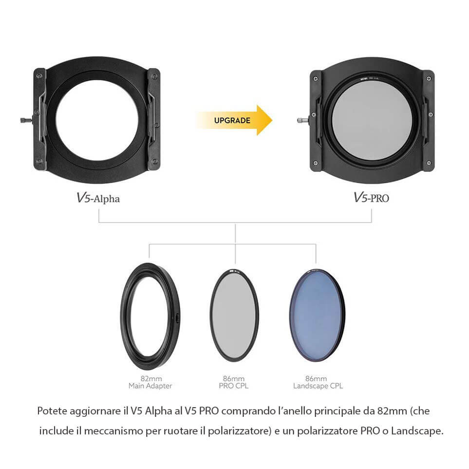 Attention: This holder does not include the polariser like the V5 PRO holder, to transform it into a V5 PRO it is necessary to add the 82mm main ring and the polariser.